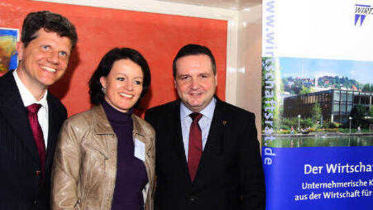Das Thema Atomkraft hat den baden-württembergischen Ministerpräsidenten Stefan Mappus (Zweiter von rechts) auch beim einem Treffen der CDU-nahen Vereinigung Wirtschaftsrat Deutschland, Sektion Pforzheim eingeholt. Dort traf er (von links) Sektionssprecher Georg Wellendorff, Landtagskandidatin Viktoria Schmid und Bundestagsabgeordneten Gunther Krichbaum.