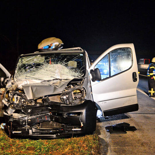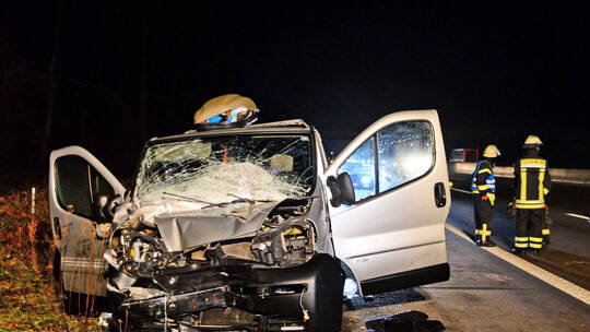 {element}Ein 45-jähriger Opel-Vivaro-Fahrer wollte nach Polizeiangaben am Mittwoch um 23.45 Uhr zwischen den Anschlussstellen Kronau und Bruchsal einen Lastwagen überholen und wechselte dafür auf die mittlere Fahrbahn. Als er dann ein sehr schnell von hinten kommendes Auto bemerkte, wollte er wieder auf die rechte Spur, übersah einen dort fahrenden Lastwagen und prallte mit diesem zusammen. Der Fahrer wurde ebenso verletzt wie seine 39-jährige Ehefrau und ihre sieben Kinder im Alter von 3 bis 16 Jahren.