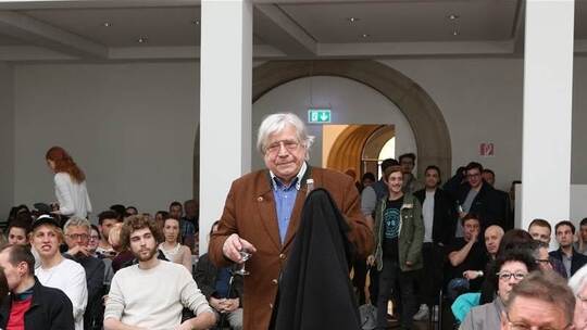 Die Zuhörer sind gebannt, auch der überwältigende Applaus am Ende des fast zweistündigen Vortrags zeigt: Er hat Freude gemacht. Denn Brock ist eine faszinierende Person. Der selbst ernannte „Denker im Dienst“ ist vor allem ein Mann der steilen These. Aus seinen fast 80 Jahren Lebenserfahrung, seiner großen Lebensspanne als Professor und Denker schafft er es Ansichten zu gewinnen, die einen faszinierenden Blick auf die Kulturgeschichte ermöglichen. Dieses weite Feld ist seine Spielwiese. Da ist ist viel Bildung in ihm. Mit Vehemenz jongliert Brock mit zentnerschweren Themen der europäischen Tradition. Nicht immer gelingt dabei eine überzeugende Synthese.