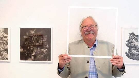 Wineblum war ebenso Stipendiat im Basler Künstlerhaus, wie Manfred Gipper. Und der durchbricht mit seiner Collage eine goldene Regel des Sammlers: Nur Arbeiten in schwarz-weiß finden in seiner Kollektionen ihren Platz. Bis auf Gippers Arbeit eben, „der hat einen winzigen rosa Punkt hineingeschmuggelt“, verrät Bartels. Mit Eckhard Bausch, René Dantes, Anina Gröger, Manfred Mohr und Heidrun Rummel sind lokale Größen vertreten – die Mehrzahl der Künstler stammt jedoch aus Deutschland und Europa. Doch manche haben ihre Wurzeln ganz nah. Wie der in Ettenheim lebende Heinz Treiber, Gründungsmitglied der Brötzinger Art, der mit seiner Ausstellung ab 2. September den Jubiläumsreigen zum 40. eröffnet.