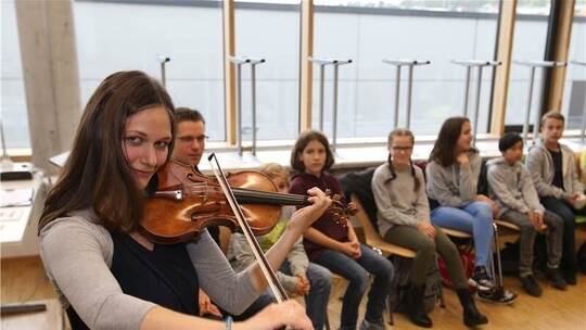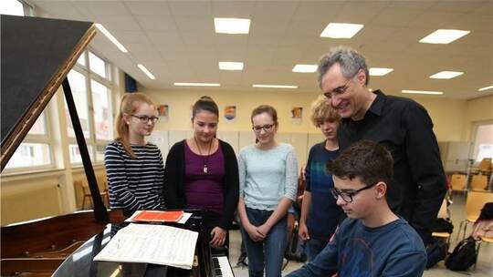 Was er sagt, trifft auf gespitzte Ohren. Kirschnereit hat es ja auch gut getroffen mit der Klasse, die im Musikzug des Gymnasiums organisiert ist. Da, wo eigentlich jedes Kind ein Instrument spielt und auch etwas anfangen kann mit klassischer Musik. Morgen besucht ein Großteil der Klasse Kirschnereits Konzert zusammen mit dem Südwestdeutschen Kammerorchester im CongressCentrum. Dann ist auch die Geigerin Lena Neudauer dabei, die am gleichen Tag in dieser Woche das Hilda-Gymnasium besucht hat.