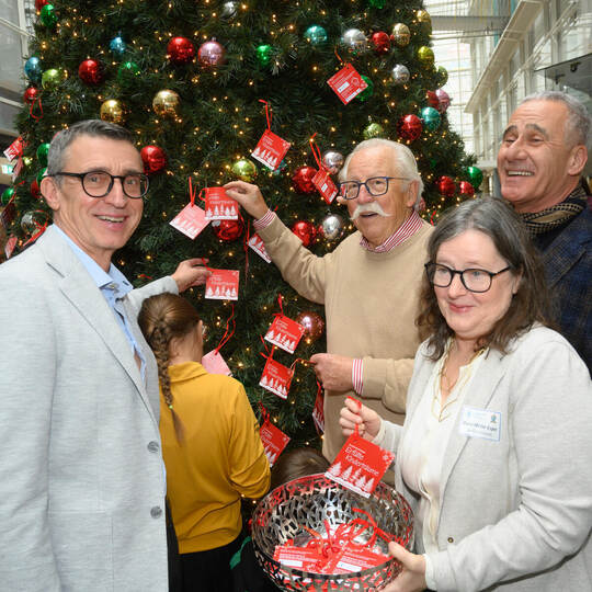 Wunschbaum im Pforzheimer Volksbank Haus geschmückt: Bedürftigen Kindern zu Weihnachten eine Freude machen