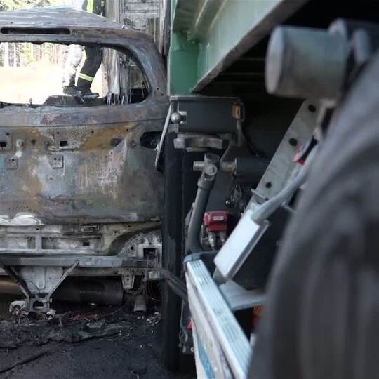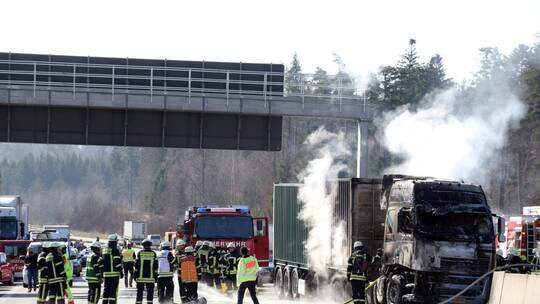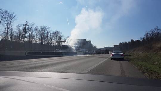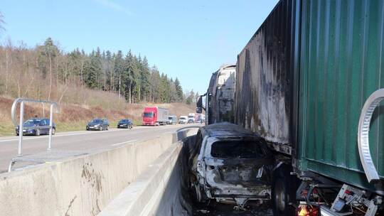 LKW und Auto brennen nach Unfall auf A8 bei Heimsheim
