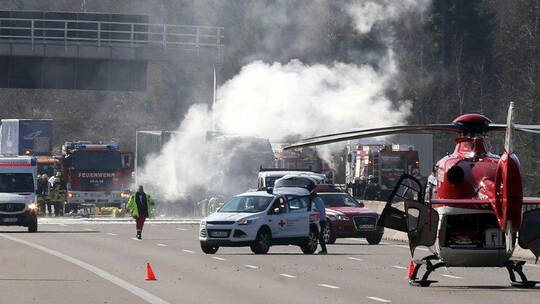 Schwerer Unfall bei Pforzheim Süd - Drei Fahrzeuge brennen