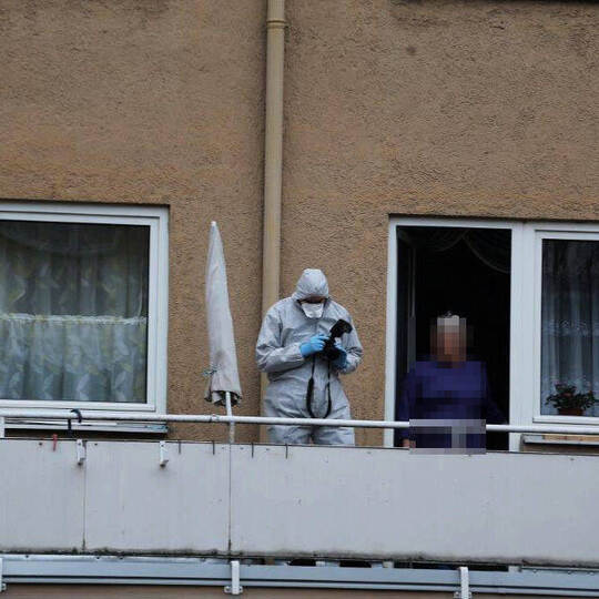 {element}Nach Einschätzung der Beamten prallte der Mann bei seinem Sturz zuerst auf ein Balkongeländer im Ersten Stock bevor sein Körper auf das Pflaster prallte. Noch ist unklar, was sich in der Wohnung genau abgespielt hat. Die Ermittlungen dauern an.