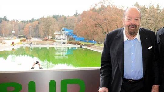 Bud Spencer vor dem Freibad von Schwäbisch Gmünd. Foto: Franziska Kraufmann