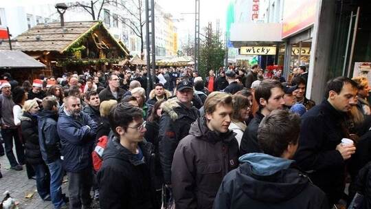 [Video] Tausende Fans von Bud Spencer strömen zur Signierstunde bei Thalia Die Schlange durch die Fußgängerzone recht bis weit zurück zum Marktplatz. Ihren Ursprung hat sie in der Buchhandlung Thalia, und dort stapeln sich an einer der drei Kassen schwarze Bücher mit weißem Titel. „Mein Leben, meine Filme“. Es ist die Autobiografie von Carlo Pedersoli, 82, in aller Welt bekannt als Bud Spencer. Ernst blickende Männer haben die Kontrolle im Eingangsbereich vor der ausgeschalteten Rolltreppe zum ersten Stock übernommen.Dort wird gegen 11 Uhr Bud Spencer, an einem Tisch sitzend, flankiert von Helfern des Verlags, sein Buch signieren. Und schon Stunden vor dem Termin stehen sich die Hardcore-Fans die Füße in den Bauch. Benjamin Probst aus Bietigheim bei Rastatt beispielsweise. Oder Stefan Horrer, Andreas Fiesel, Alexander Braun und Benjamin Ball aus Pfalzgrafenweiler. Seit 6 Uhr sind sie in Pforzheim.