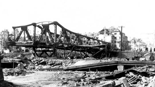 Eines der zahlreichen Bauwerke, die dem Krieg zum Opfer fielen, war die Nordstadtbrücke. Seit 1913 überspannte sie nahe des Bahnhofs die Gleise. Nachdem sie am 23. Februar 1945 völlig zerstört worden war, wurde sie völlig neu gebaut. Doch es dauerte nach Kriegsende noch sechs Jahre, bis sie wieder stand.
