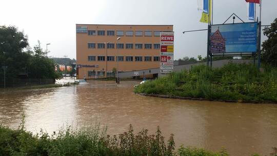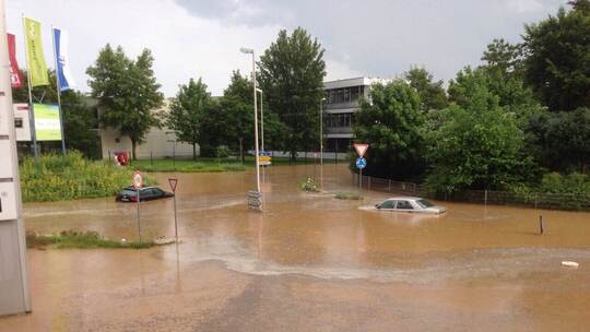 Die Folge des Dauerregens: Sämtliche Senken der Innenstadt waren mit Wasser und später auch mit Schlamm aus den umliegenden Äckern überschwemmt. Die Zufahrt zur Rechbergklinik war für rund drei Stunden nicht mehr möglich. Mehrere Fahrzeuge wurden aus den Senken Heilbronner Straße, Herrmann-Beuttenmüller-Straße und Rinklinger Straße von der Feuerwehr geborgen. Zwei Fahrzeuge waren nicht mehr zu retten. Es kam zu mehreren Motorschäden durch Wassereintritt.