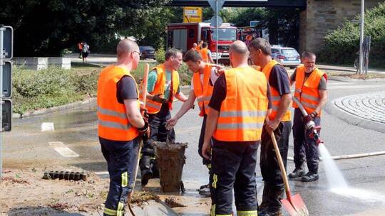 Aufräumarbeiten nach Unwetter und Überschwemmung in Bretten