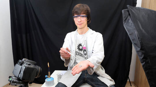 Mit der Anonymisierung möchte Marcel seine Privatsphäre schützen. Schließlich ist er der wohl erfolgreichste Youtuber aus der Region. Schon 2008 experimentierte er mit Slow-Motion- und Gaming-Filmchen. Aber eine Nische fand er erst mit „Techtastisch – Experimente und Lifehacks“, wie sein vor zwei Jahren gestarteter Kanal mit vollem Namen heißt. Dabei ist so mancher „Lifehack“, der seine Fans verblüfft, Großmüttern schon als „Trick 17“ bekannt: etwa die Reinigung von Silber mit Wasser, Salz und Alufolie. Anders als die Durchschnittsseniorin erklärt Marcel in seiner Dachgeschosswohnung aber auch, wegen welcher chemischer Reaktionen die Münze wieder glänzt. Welche das genau sind, haben fast 50 000 Betrachter des Videos gelernt.
