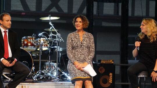 Faust-Open Air mit facettenreicher Programmvielfalt: In Knittlingens historischer Altstadt zelebrierte das renommierte Faust-Museum am Samstagnachmittag und -abend ein außergewöhnlich buntes Event unter freiem Himmel. Ansprechendes gab es auf und vor der Bühne für jede Altersgruppe und für fast jeden Geschmack: Wissenschaftler verschiedener Sparten und Freunde des Museums standen in einer Talk-Runde der Moderatorin und Schauspielerin Anne von Linstow („Die Fallers“) Rede und Antwort.