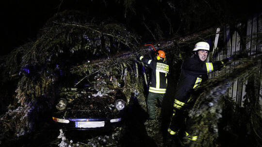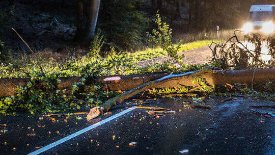 In Calw ereignete sich aufgrund des Unwetters ein schwerer Verkehrsunfall. Ein 35-jähriger war auf der Bundestraße B463 in Richtung Wildberg unterwegs, als vor ihm ein große Tanne auf die Straße stürzte. Der Mann konnte nicht mehr rechtzeitig bremsen und prallte auf den Baum. Das Auto schleuderte anschließend in den Straßengraben. Der Fahrer verletzte sich dabei zum Glück nur leicht. Beim Auto entstand ein Totalschaden.