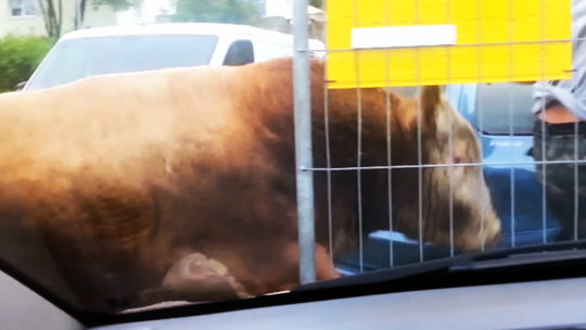 [Video] Entlaufener Stier beschädigt Autos in Birkenfeld