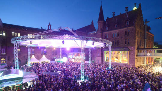 Das Musikprogramm begeisterte einmal mehr, wobei absoluter Höhepunkt die Band „Me and the Heat“ war, die am Sonntagabend den oberen Hof rockte und die Fans und den „Magic Sky“ zum Beben brachte. Der „magische Himmel“ sorgte auch bei seinem 2. Einsatz wieder für echtes Open Air-Feeling, das die Burgfest-Fans lieben. Heiße Rhythmen, dazu der Blick in das beleuchtete Sudhaus hinein – Burgfestromantik pur!