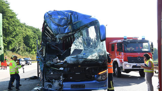 Tragischer Busunfall auf A5: Ein Toter, 30 Verletzte