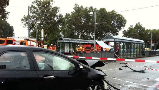 Auto schleudert in Karlsruhe in Haltestelle: Zwei Menschen tot