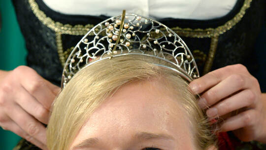 Josefine Schlumberger, Badische Weinkoenigin 2014, kroent ihre Nachfolgerin, Isabella Vetter (22) aus Herbolzheim, zur neuen Badischen Weinkoenigin 2015/2016 am 06.06.2015 in Freiburg.