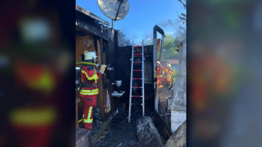 Am Sonntagmorgen wurde die Bruchsaler Feuerwehr um 7:52 Uhr mit dem Alarmstichwort „Gartenhüttenbrand“ in die Kleingartenanlage Hanfröste gerufen. Eine dicke schwarze Rauchwolke zeigten den Einsatzkräften den Weg zum Brandort. Beim Eintreffen des ersten Fahrzeugs stand ein Saunaanbau einer Gartenhütte im Vollbrand und hatte bereits auf die Gartenhütte übergegriffen. Umgehend wurde mit zwei Trupps unter Atemschutz mit zwei C-Rohren die Brandbekämpfung eingeleitet. Der Brand konnte schnell unter Kontrolle gebracht und gelöscht werden. Das Feuer war bereits in die Dämmung der Sauna und im Dachbereich der Gartenhütte in deren Dämmung gelaufen. Bei der Kontrolle mit der Wärmebildkamera waren etliche Wärmequellen aufzufinden.