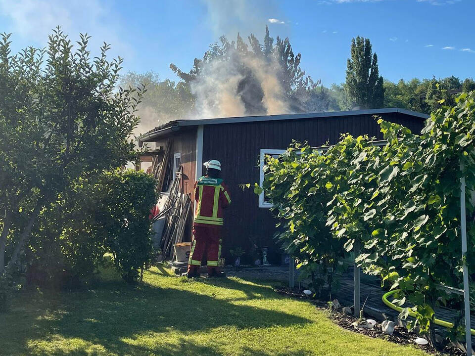 Bruchsal. Eine dicke schwarze Rauchwolke zeigte am Sonntagmorgen der Feuerwehr den Weg zur Einsatzstelle. In einer Kleingartenanlage brannte aus unbekannten Gründen ein Saunaanbau einer Gartenhütte und hatte schon auf die Gartenhütte übergegriffen. Die Nachlöscharbeiten beschäftige die Feuerwehr mehrere Stunden.