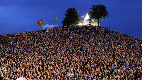 {element}Wie die Veranstalter mitteilten, sind inzwischen 90 000 Karten für das dreitägige Spektakel mit Bandgrößen wie Wir sind Helden oder Skunk Anansie verkauft worden. Nun hoffen die Organisatoren auf gutes Wetter. Im vergangenen Jahr kamen rund 244 000 Menschen in die Günther-Klotz-Anlage.