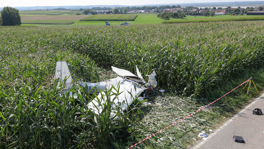 Was genau zu dem Absturz führte, war auch einen Tag nach dem Unglück zunächst unklar. Den ersten Ermittlungen der Kriminalpolizei Ulm und der Bundesstelle für Flugunfalluntersuchungen zufolge hatte die Maschine am Samstag einige Bäume in der Nähe der Absturzstelle touchiert. Sie schlug neben einer Straße zwischen Tiefenbach und Höfen in ein Maisfeld ein und zerschellte.