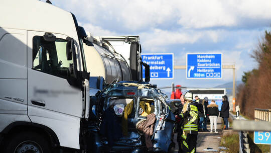Den Ermittlungen zufolge hatte der Fahrer eines Sattelzuges am Montagnachmittag auf dem rechten von drei Fahrstreifen zwischen der Anschlussstelle Kronau und dem Autobahnkreuz Walldorf gestoppt. Dahinter hielten zwei Autos in Fahrtrichtung Frankfurt ebenfalls an. Der Fahrer eines nachfolgenden Sattelzuges konnte nicht rechtzeitig bremsen und schob beide Wagen unter das stehende Fahrzeug. Bei dem Rettungseinsatz bildete sich ein Stau von mehreren Kilometern Länge.