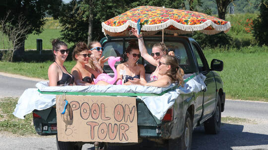 Unlingen. Bei Temperaturen über 30 Grad hat eine Gruppe junger Frauen einen Pickup-Truck zum mobilen Pool umfunktioniert.