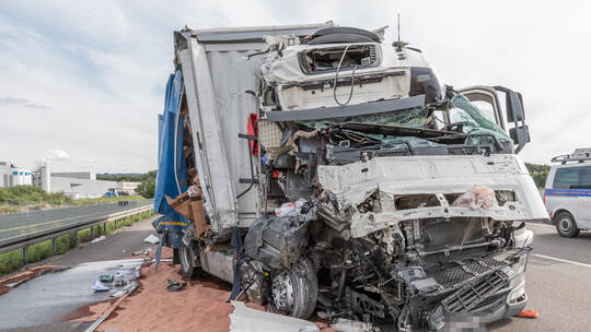 Der Verursacher wurde leicht verletzt in ein Krankenhaus eingeliefert. Durch die Wucht des Aufpralls wurden die Fahrzeugteile auf der gesamten Fahrbahn verteilt und es liefen große Mengen Betriebsstoffe aus. Der Sachschaden wird auf circa 650.000 Euro geschätzt. Der Verkehr konnte über die linke Fahrspur geleitet werden, die Richtungsfahrbahn musste aber immer wieder im Laufe der Bergungsarbeiten voll gesperrt werden, was zu einer Staubildung von bis zu 15 Kilometern führte. Erst gegen 21.15 Uhr konnte die Autobahn wieder freigegeben werden.