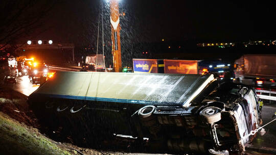 Am Lastwagen und Ladung entstand nach ersten Polizeischätzungen ein Schaden von 145.000 Euro. Die Autobahn wurde am frühen Morgen nach mehreren Stunden Sperrung wieder freigegeben.