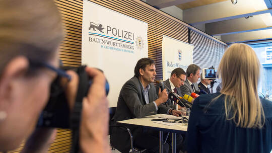 Andreas Stenger, Leiter des Kriminaltechnischen Institutes des Landeskriminalamtes Baden-Württemberg, bei der Pressekonferenz zum Fall der vergewaltigten und ermordeten Studentin in Freiburg. Ein 17-jähriger unbegleiteter Flüchtling aus Afghanistan gilt als Tatverdächtiger.