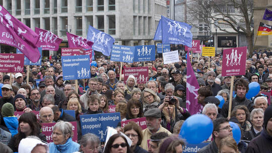 Knapp 1000 Menschen haben in Stuttgart gegen den Bildungsplan der Landesregierung und ein Konzept für die Gleichstellung von Homosexuellen mit Heterosexuellen protestiert. Auf Transparenten mit Aufschriften wie «Ehe und Familie vor» machten sie am Samstag deutlich, dass für sie allein die traditionelle Familie eine gute Familie ist.