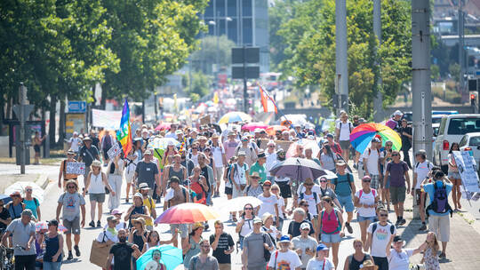 Stuttgart. Gegner der Corona-Schutzmaßnahmen haben sich am Samstag zu einer «Querdenken»-Demo versammelt. Die Polizei sprach am Nachmittag von mehreren Hundert Teilnehmern, die Veranstalter nannten die Zahl 5000. Zunächst hatten sich die Teilnehmer bei großer Hitze auf dem Marienplatz versammelt und zogen dann Richtung Innenstadt. Demonstranten zeigten Transparente mit Aufschriften wie «Mit Maske - Ohne Mich» oder «Wir haben Euch durchschaut». Sie skandierten «Freiheit, Freiheit». Organisiert wurde die Demonstration von der Initiative «Querdenken 711».
