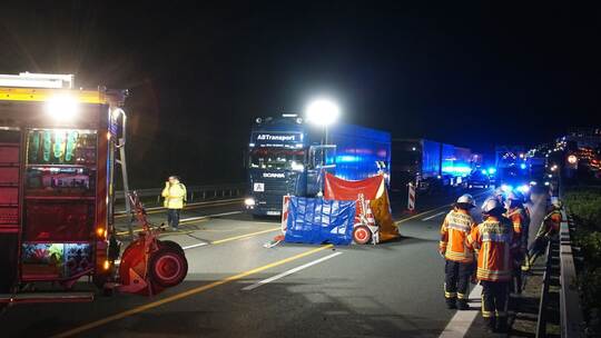 Ermittlungen zufolge hatte die Frau am frühen Montagmorgen einen Wagen an der Baustelle geparkt und war ausgestiegen. Dann sei sie von einem Lastwagen erfasst und auf den Mittelstreifen der Autobahn geschleudert worden. Dort sei sie noch vom Mercedes eines 41-Jährigen überfahren worden. Dabei habe sie tödliche Verletzungen erlitten.