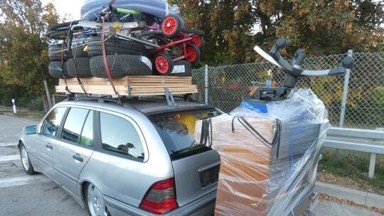 Auf den Dachgepäckträger hatte der Mann unter anderem Reifen und Fahrräder gestapelt. Der am Heck angebrachte Fahrradträger wurde umfunktioniert. Auf diesem transportierte der 46-Jährige ein Klavier, auf dem oben auf noch ein Bürostuhl thronte. Der Mercedes wurde im weiteren Verlauf gewogen und eine Überladung von knapp 400 Kilogramm festgestellt.