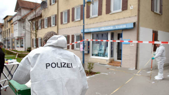 An diesem Tatort vor einem Friseurgeschäft in Heidenheim, den gerade Ermittler der Polizei untersuchen, soll im April 2016 ein Mitglied der rockerähnlichen Gruppierung Black Jackets auf zwei Männer der United Tribuns gefeuert haben, von denen einer an den Schüssen starb.