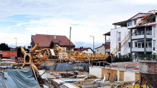 Ein 30 Jahre alter Bauarbeiter hatte am Montag Betonteile von einem Lastwagen abgeladen, als das Erdreich unter dem zwölf Meter hohen Kran nachgab. Dieser stürzte auf das Zwölffamilienhaus. Verletzt wurde niemand.