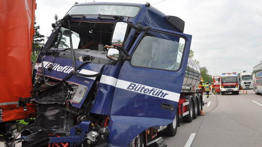 Der 46-Jährige trug lebensgefährliche Verletzungen davon und kam per Rettungshubschrauber in ein Krankenhaus. Schwer verletzt wurde der 61-jährige Tankzugfahrer, dessen Lkw ohne Ladung unterwegs war. Unverletzt blieben der 38-jährige Lenker des bulgarischen Schwerfahrzeugs und dessen Beifahrer. Im Einsatz waren neben dem Rettungshubschrauber zwei Rettungsteams und ein Notarzt, darüber hinaus 30 Kräfte der Berufsfeuerwehr Karlsruhe sowie der Freiwilligen Wehren aus Weingarten und Walzbachtal.