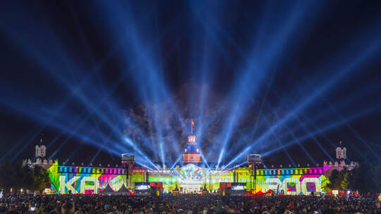Karlsruhe (dpa/lsw) - Bunte Lichter, schrille Farben und ein bombastisches Feuerwerk: Mit einer lauten und geschichtsträchtigen Show hat die Stadt Karlsruhe am Samstagabend ihr Eröffnungswochenende zum 300. Stadtgeburtstag gefeiert. Mehr als 40 000 Zuschauer verfolgten auf dem Schlossplatz, wie 300 Jahre Stadtgeschichte auf der Bühne und der Fassade des Schlosses in der Fächerstadt lebendig wurden. Immer wieder unterbrochen von Feuerwerk zeigten Sänger, Tänzer und Schauspieler Szenen der Stadtgeschichte vor orange, blau oder kunterbunt angestrahlter Kulisse, begleitet von Laserlicht-Effekten. Auch das Wetter spielte gerade rechtzeitig mit.