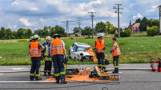 Oberhausen-Rheinhausen. Ein schwerer Verkehrsunfall ereignete sich am Samstagmittag gegen 14 Uhr auf der L560 an der Abfahrt in Richtung Oberhausen/Waghäusel. Ein Auto fuhr frontal auf einen LKW. Eine Person verstarb noch an der Unfallstelle.