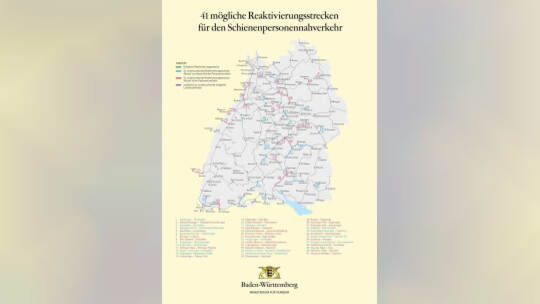 Verkehrsminister Hermann sagte am Montag in Stuttgart: "Viele der zwischen 1960 und 1990 stillgelegten Strecken haben auch heute noch ein hohes Fahrgastpotential. Das wollen wir dort wieder heben, wo eine Reaktivierung noch möglich ist." Erfolgreiche Reaktivierungen der vergangenen Jahre würden zeigen, dass manche Schienenstrecke viel attraktiver sei, als zuvor angenommen wurde. Dies gelte unter anderem für die beiden im Jahr 1996 wieder in Betrieb genommenen Bahnen "Seehäsle" zwischen Radolfzell und Stockach (Landkreis Konstanz) und "Schönbuchbahn" zwischen Böblingen und Dettenhausen, sowie für die 1999 reaktivierte Ammertalbahn zwischen Tübingen und Herrenberg.
