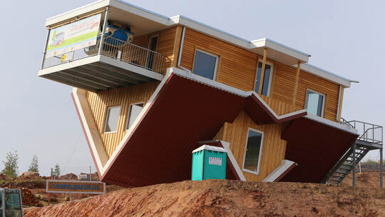 In dem Haus werden nach Angaben der Firma alle Gegenstände des täglichen Lebens an der Decke befestigt. Auch in einem Carport hängt ein Auto kopfüber. Nach Angaben des Unternehmens wurden mehr als 380 Stahlteile mit einem Gewicht von rund sieben Tonnen verbaut. Ähnliche Häuser sind bereits auf den Inseln Rügen und Usedom (Mecklenburg-Vorpommern), in Günthersdorf (Sachsen-Anhalt) und Affoldern (Hessen) gebaut worden. In der rund 23 000-Einwohner-großen Stadt Wertheim zieht in der Nähe des umgedrehten Hauses ein Mode-Outlet Besucher an.