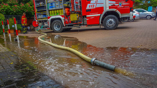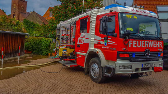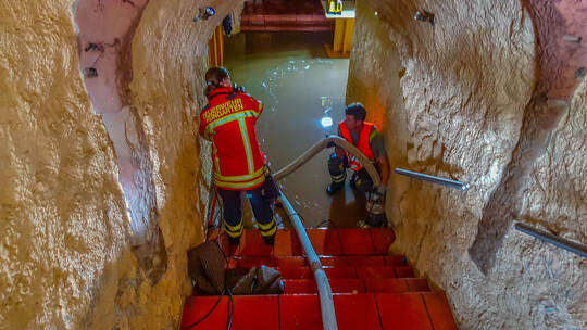Um 16:14 Uhr ging ein Alarm von einer Gaststätte in Weingarten ein. Durch einen Wasserrohrbruch außerhalb des Gebäudes drückten große Wassermengen in den Gastraum, der sich im Keller befand. In kürzester Zeit wurden die etwa 90 Quadratmeter großenRäumlichkeiten mit Wasser und Schlamm verunreinigt. Beim Eintreffen der Feuerwehr hatte der Wassermeister der Gemeinde den Wasserschieber zwar schon geschlossen, so dass kein weiteres Wasser nachlaufen konnten, aber in den Gaststätten-Räumlichkeiten hatte sich in der Zwischenzeit ein Wasserhöhe von bis zu 30 Zentimetern angesammelt.