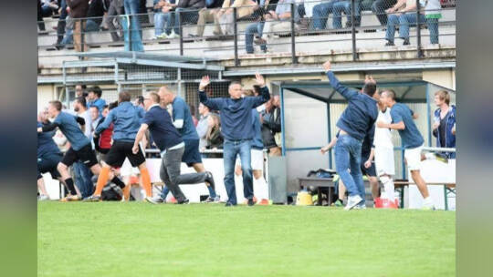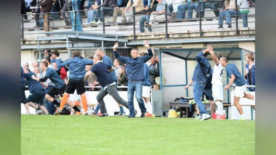 Der 1. CfR Pforzheim schafft die Sensation gegen Waldhof Mannheim: Nach 120 Pokal-Minuten steht es 2:1 für den Verbandsligisten. Fotos: Ripberger