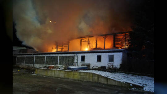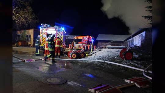 In Vaihingen an der Enz ist in der Nacht auf Sonntag eine Scheune mit Strohballen komplett abgebrannt. Der Schaden beträgt laut Polizei rund 200.000 Euro.
