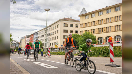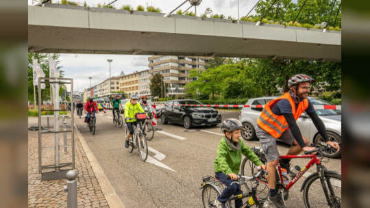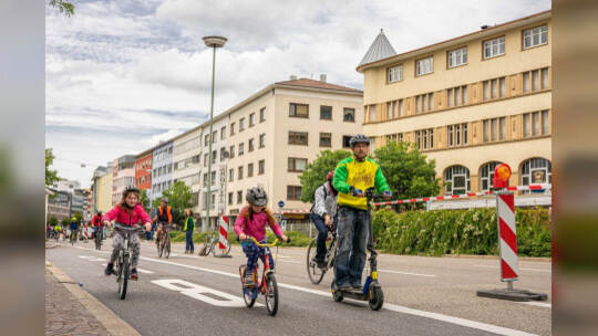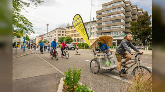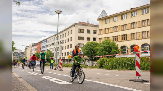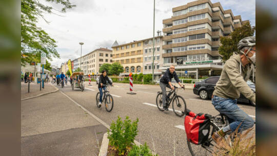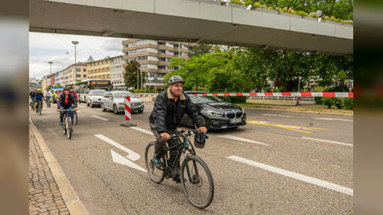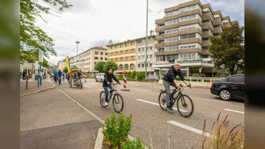 Zwischen 14 und 16 Uhr hatten Radfahrer am Sonntag die Möglichkeit, einen Radweg auf der Zerrennerstraße zwischen den Kreuzungen Leopoldstraße und Deimlingstraße in Fahrtrichtung Bibliothek zu reservieren. Bereits Ende Mai hatte die Initiative "Critical Mass" zu einer Pop-Up-Radweg-Aktion auf der Luisenstraße aufgerufen. Fotos: Eickhoff
