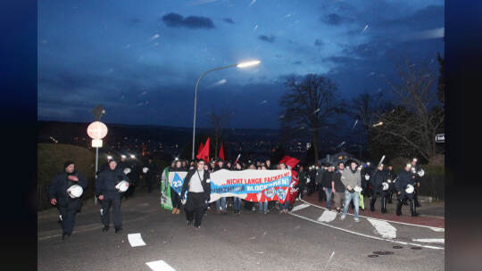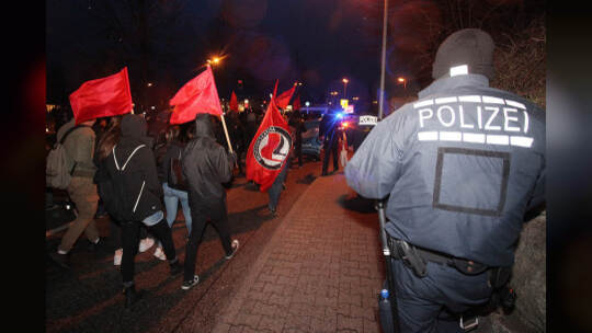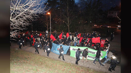 Antifa-Demonstrationszug zum Wartberg – Pyrotechnik und VermummungenAntifa-Demonstrationszug zum Wartberg – Pyrotechnik und Vermummungen. Fotos: Meyer23. Februar 2017