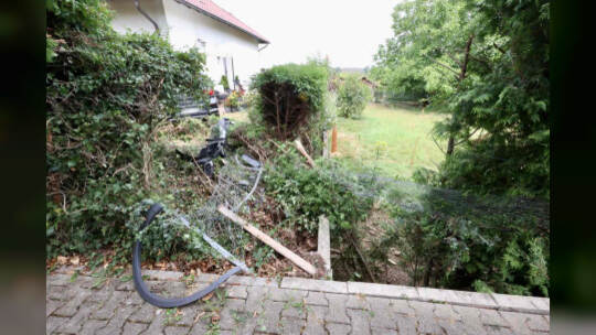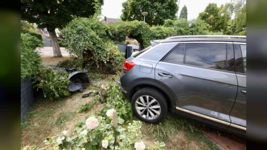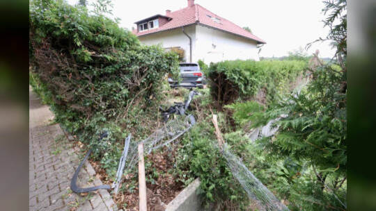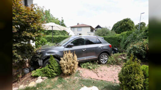 Das Auto kam von der Hachelallee ab und landete in einem Garten. Hierbei wurde der Fahrer verletzt und musste anschließend in ein Krankenhaus gebracht werden.