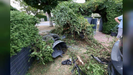 Auto landet nach Unfall in Pforzheimer Garten