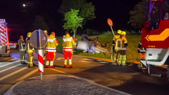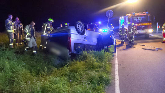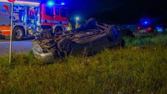 Der Fahrer hatte mit dem Citroen am Kreisel eine Verkehrsinsel überfahren, das Auto überschlug sich und blieb auf dem Dach liegen. Der Unfallverursacher flüchtete anschließend und konnte von der Polizei noch nicht gefasst werden.